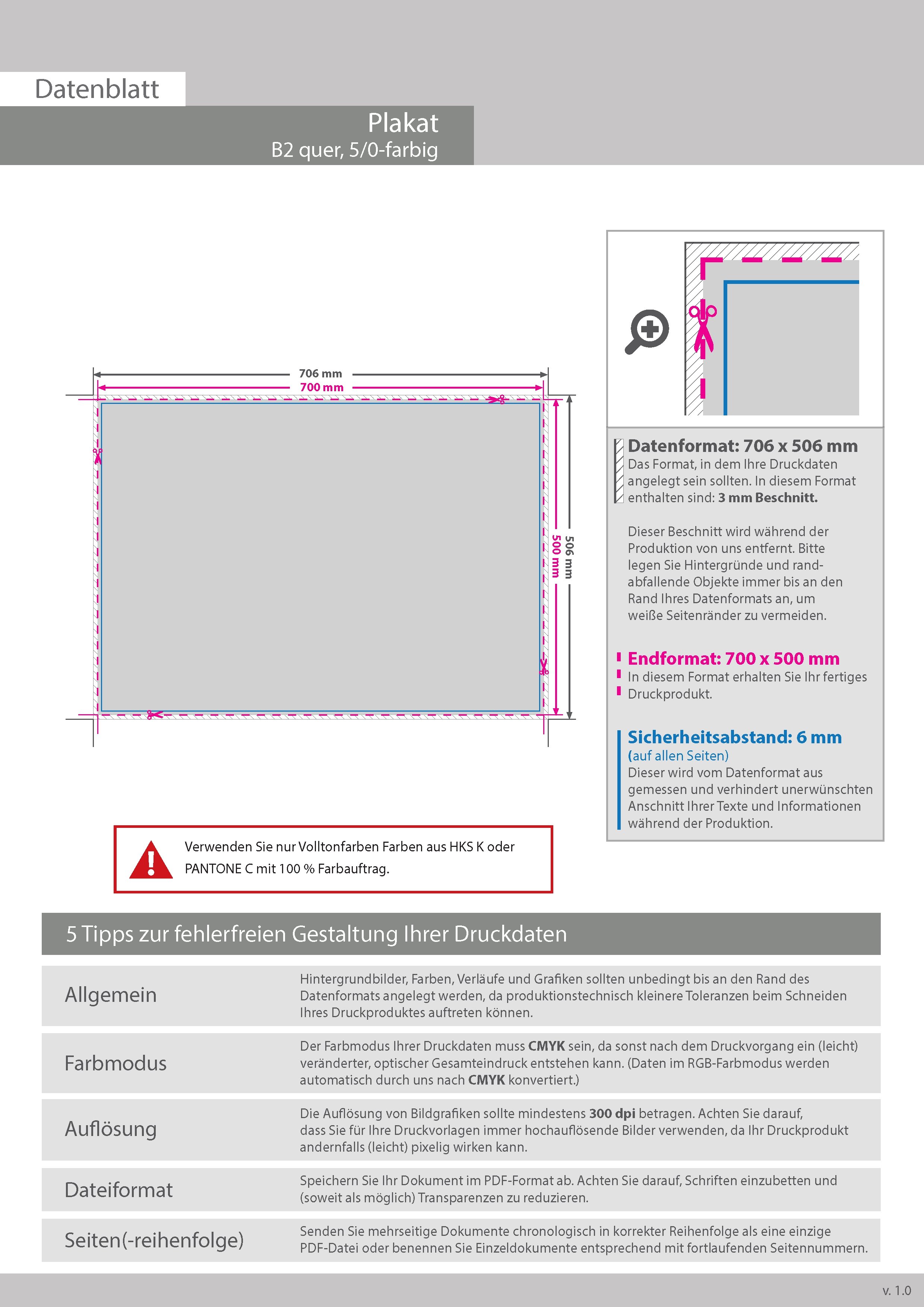 Plakat B2 quer (700 x 500 mm) einseitig 5/0-farbig bedruckt (CMYK 4-farbig + 1 Sonderfarbe HKS oder Pantone)