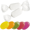 Wir bedrucken den Wickel, der die einzelnen Bonbons umschließt, 4/0-farbig nach Ihren Wünschen. Die Tüten, in denen die Drops abgepackt sind, sind durchsichtig und bleiben unbedruckt. Wir empfehlen Ihnen, Ihre einzigartig bedruckten Fruchtbonbons kühl und trocken zu lagern.